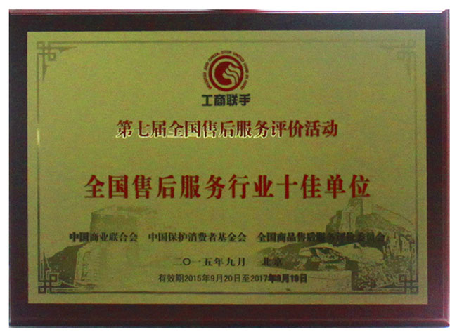 2015年9月20日,第七屆全國(guó)售后服務(wù)評(píng)價(jià)活動(dòng)發(fā)布會(huì)在北京舉行,會(huì)上我們上海熊貓機(jī)械(集團(tuán))有限公司榮獲“全國(guó)售后服務(wù)行業(yè)十佳”稱號(hào);并在會(huì)上由中國(guó)輕工業(yè)聯(lián) 合會(huì)會(huì)長(zhǎng)步正發(fā)為我們熊貓頒發(fā)《商品售后服務(wù)評(píng)估體系》五星級(jí)認(rèn)證證書(shū)。
